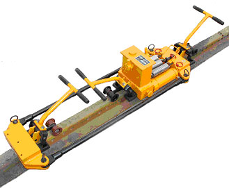 主要技術參數 : 額定推力:400kN 工作行程:140mm 工作缸額定壓力:52Mpa 空載效率: 2.2mm/一次往復 工作缸數及內徑:2xφ70mm 柱塞泵數及內徑: 4xφ16mm 工作缸總容積:1115.8立方厘米 工作缸總容積: 920 x 320 x 370 凈重:90Kg 本廠是國家二級企業。是生產鐵路工務、橋梁、線路大修機具的定點廠家。本廠鉆孔機、切軌機、打磨機、起撥道器等產品都經過部級鑒定。 一、用 途 調整鐵路鋼軌接頭間隙。由于受氣候變化及行車等因素影響,鋼軌其間隙經常發生變化。為保證行車安全,工務部門對鋼軌接頭間隙都有一定要求,為此必須串動鋼軌。YTF-400型軌縫調整器推力大,使用它可以對50Kg/m、60Kg/m、75Kg/m、的鋼軌完成串軌任務。 二、結 構 YTF-400型軌縫調整器的結構主要由走行輪組合、撥桿組合、操縱桿組合、油箱組合復位彈簧、彈簧板組合、后夾具體組合、小、大安全銷組合、工作壓力缸總成,前夾具體及楔鐵等結構。 三、使用方法: 手握撥桿橫梁將軌縫調整器置于單根鐵軌頂面上,抬起撥桿,撥動楔鐵外移,走行輪隨同杠桿下降壓在鋼軌頂面上,軌縫調整器被撐起,這樣就可使軌縫調整器沿鋼軌行走,運送到需要串軌處。 串軌工作時,壓下撥桿,撥動楔鐵沿鐵槽向內移動,楔鐵牙面間距逐漸縮小,安裝在走行機構上的杠桿及走行輪,隨聯動機構上抬,機體下降,夾具體下槽頂面落在鋼軌頂面上,旋緊回油控制閥(右旋)搖動操縱桿,柱塞泵作往復運動將液壓油由油箱吸入柱塞泵,通過閥座壓入工作缸內,工作缸內活塞即可伸出,當活塞伸出到20-40毫米后,再壓緊后楔鐵座上的撥桿,使楔鐵夾緊在鋼軌兩側面上,然后繼續壓泵,鋼軌接頭的縫隙便可逐漸加大,軌縫達到要求尺寸后,停止壓泵,左旋回油控制閥半周,由于復位彈簧的作用下活塞桿即可復位。抬起撥桿,放松楔鐵,串軌工作即可完畢。 四、維護保養方法與注意事項 1、 產品開箱后,應檢查各部件是否完好齊全。 2、 整個機具清洗干凈,旋下加油孔蓋,將經過過濾后的HJ20號機械油加入油箱內;當工作環境溫度低于零下10度以下時可更換GB442-64合成錠子油,在加油時應注意排出工作缸內空氣,其方法為壓動油泵,將油壓入工作缸內,放開回油控制閥,使油放回油箱后,再關閉回油閥,如此反復數次,直至回油時不發生氣泡為止。 3、 在楔鐵尚未卡緊軌頭之前,須先將工作缸活塞壓出20-40毫米,然后再將楔鐵卡緊軌頭開始工作,以避免工作中受壓楔鐵咬死在軌頭上,工作缸復位時無伸縮余地,造成工作缸頂住楔鐵,楔鐵難以脫落。 4、 本軌縫調整器的最高工作壓力,由安全閥控制,出廠前已校準,安全閥是確保機具不超出額定工作壓力,保證部件不因超負荷而損壞的重要設施,在定期保養時須進行校驗。 5、 在使用保管時應防止沖擊、碰撞,工作中搖動桿不可用力過猛。 6、 由于本機具是液壓系統,零部件配合精度較高,在運輸或使用過程中難免有污物進入機內,一般常見故障為油泵失靈,可將壓力表絲堵旋下,壓動油泵,排出舊油,然后在油箱中加入洗油,用同樣方法將油路清洗干凈,然后按保養方法第二條要求加入新油。 五、安全快速下道裝置使用說明 1、 分別用雙手向上提出前夾具體的兩個安全銷。 2、 左旋回油閥搬把,使安全連板和工作油缸同時回程而使前部夾具體與整機解體。 3、 迅速將整機解體的兩部分分別迅速下道。 4、 注意:本安全快速下道裝置是在緊急情況下使用。 |